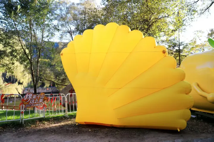 首先在景区入口处设置了银杏主题景观墙,让游客刚走进景区,便瞬间体验到银杏节的氛围感。无量观广场打造的银杏如愿角,与千山祈愿树相映成趣,承载秋日美好期许。千山无量观银杏大道上,专属的银杏叶相框为你定格与秋天的第一帧浪漫合影。此外,云潭湖畔布置的巨型银杏创意气模、龙泉寺登山步道旁用银杏叶拼成的“缘”字立体墙,为游客的秋日打卡提供更多创意选择。