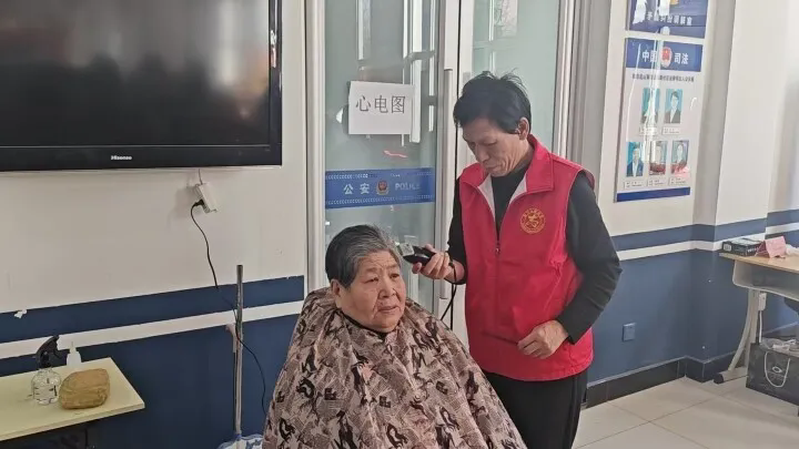 “正好要到春节了,来这理理发。这里的志愿者对我们热心关照,服务态度还好。主要是不用走远,出家门就能享受各种服务。”83岁的靳宝珍老人刚刚在大集理了头发,人一下子精神了不少。