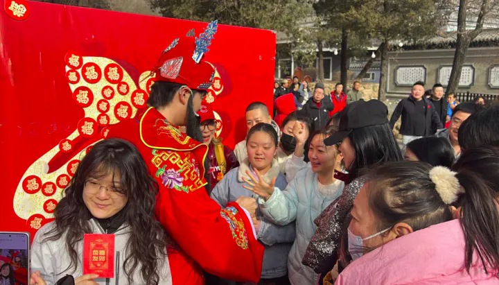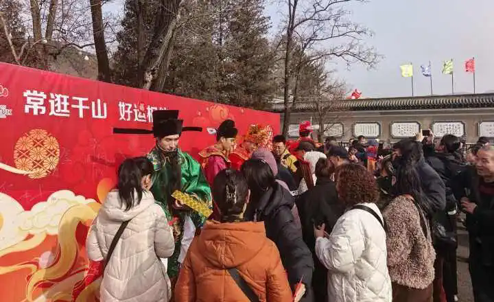 景区还精心准备了财神NPC互动、莲花仙子巡游、秧歌表演等活动,游客们争相和“财神爷”互动打卡合影,讨个新年好彩头,整个景区洋溢着喜庆欢腾的节日氛围。