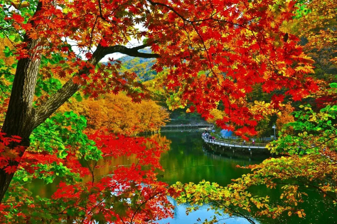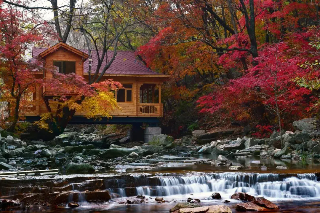 枫林谷:名副其实的枫叶王国,走在金色与红色的山林间,阳光穿透叶隙,光影交错,浪漫至极。