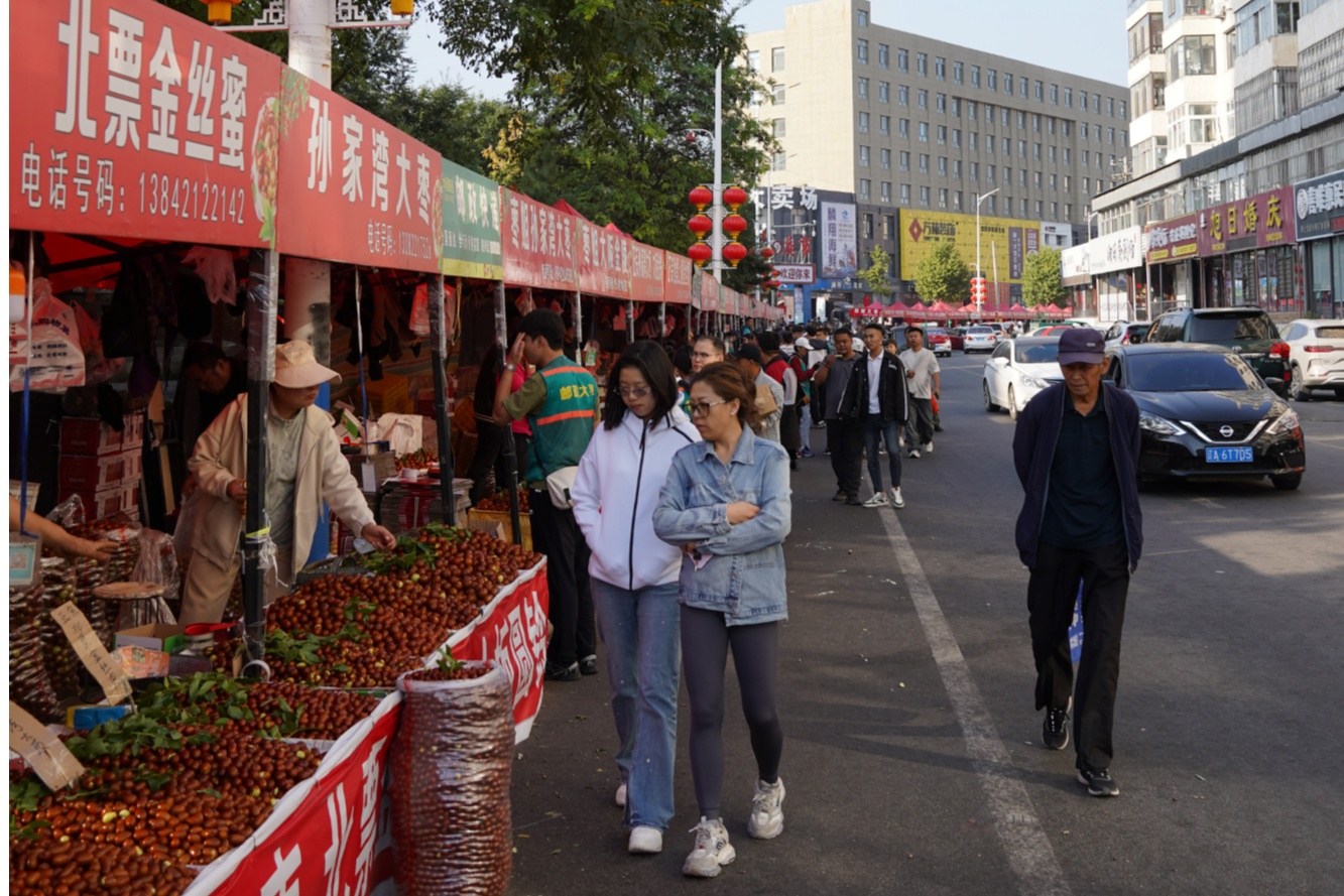 朝阳“枣”市摊位成排(央广网记者 李子平 摄)