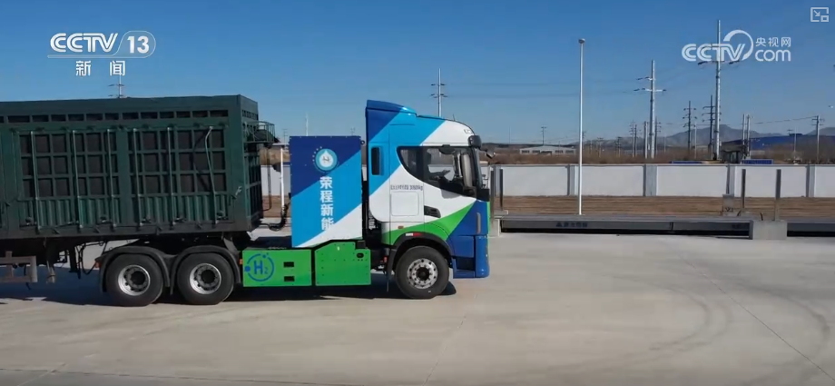 其中,一个新兴应用领域是氢能重卡。比如,为这样一辆氢能重卡加满氢气,就能载着差不多40吨货物,从沈阳到大连跑一个来回。