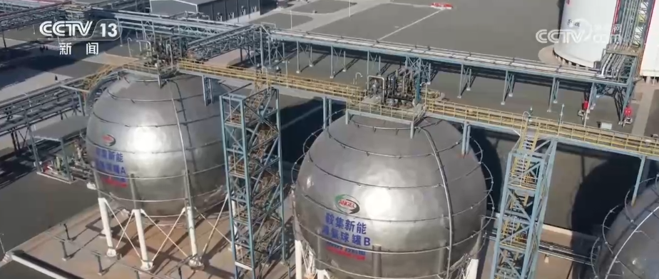 这里每时每刻转化出来的天然气和氨都以液体的形式存储到这些三四十米高,巨大无比的球形和圆柱形罐体里。这么一罐液化天然气可以为20万个家庭提供一个月左右的供暖。生产出的液氨则可以进一步被加工成农业用的化肥、冷链用的冷冻剂,甚至火箭用的推进剂。