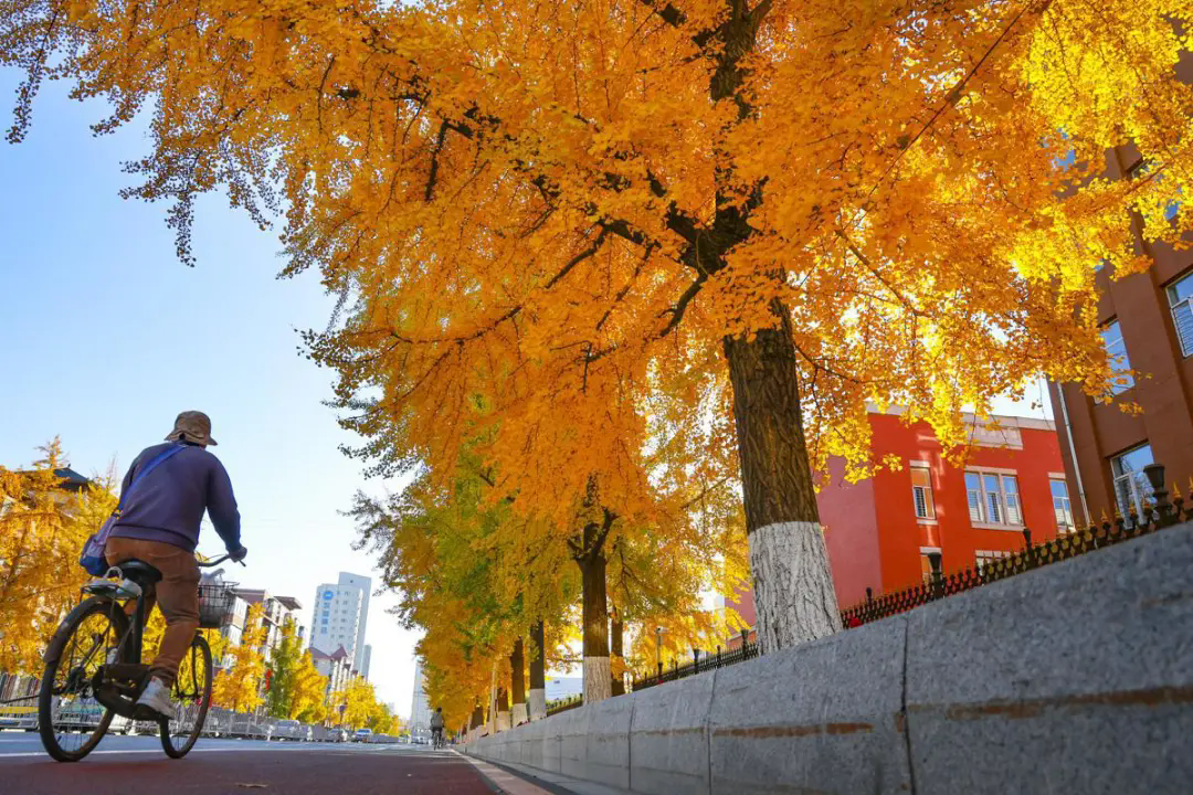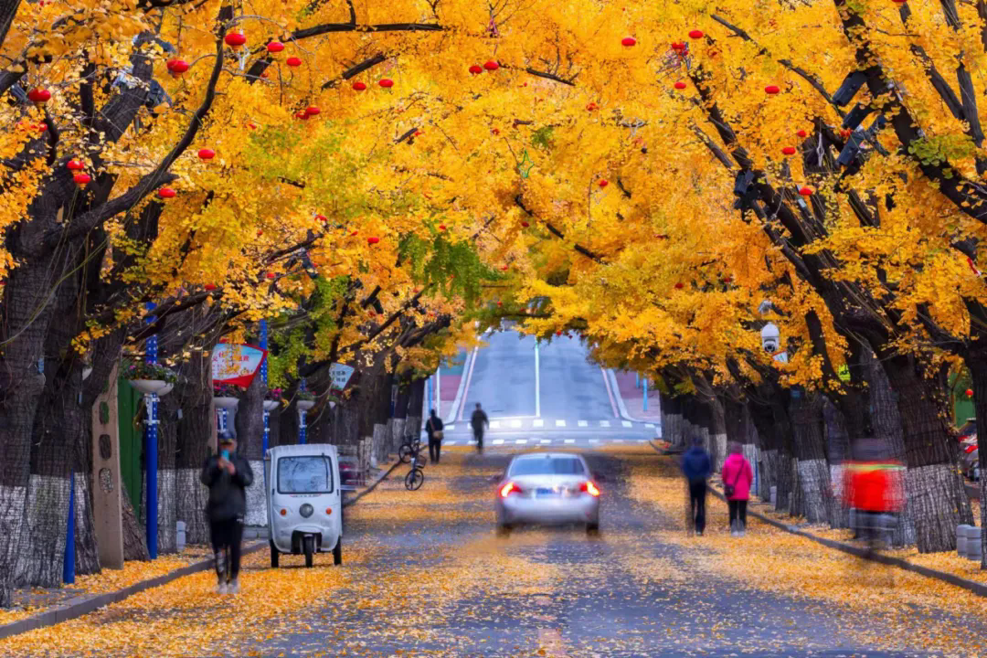 丹东,作为亚洲拥有百年银杏街道最多的城市,这个月底将迎来“满城尽带黄金甲”的壮美。