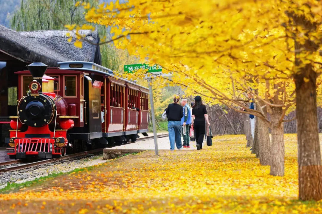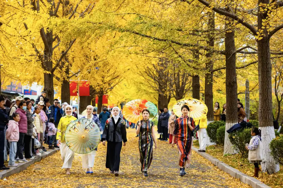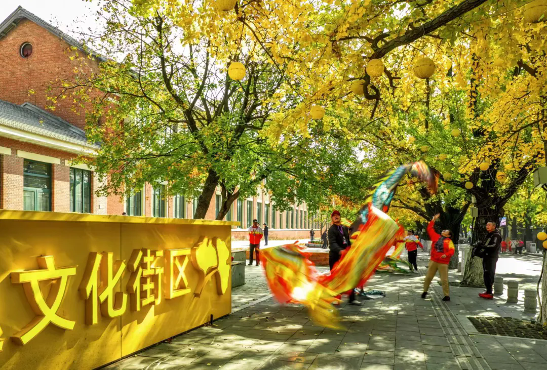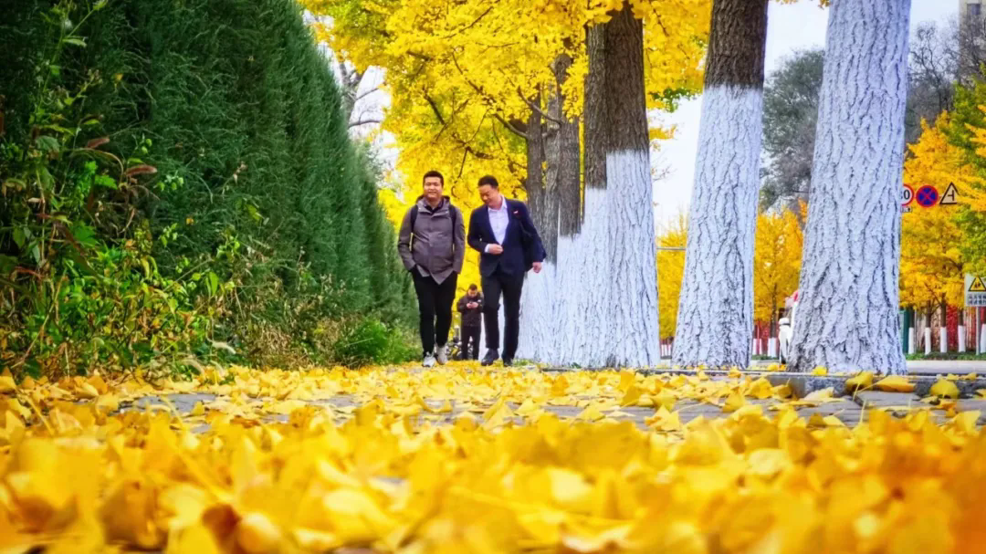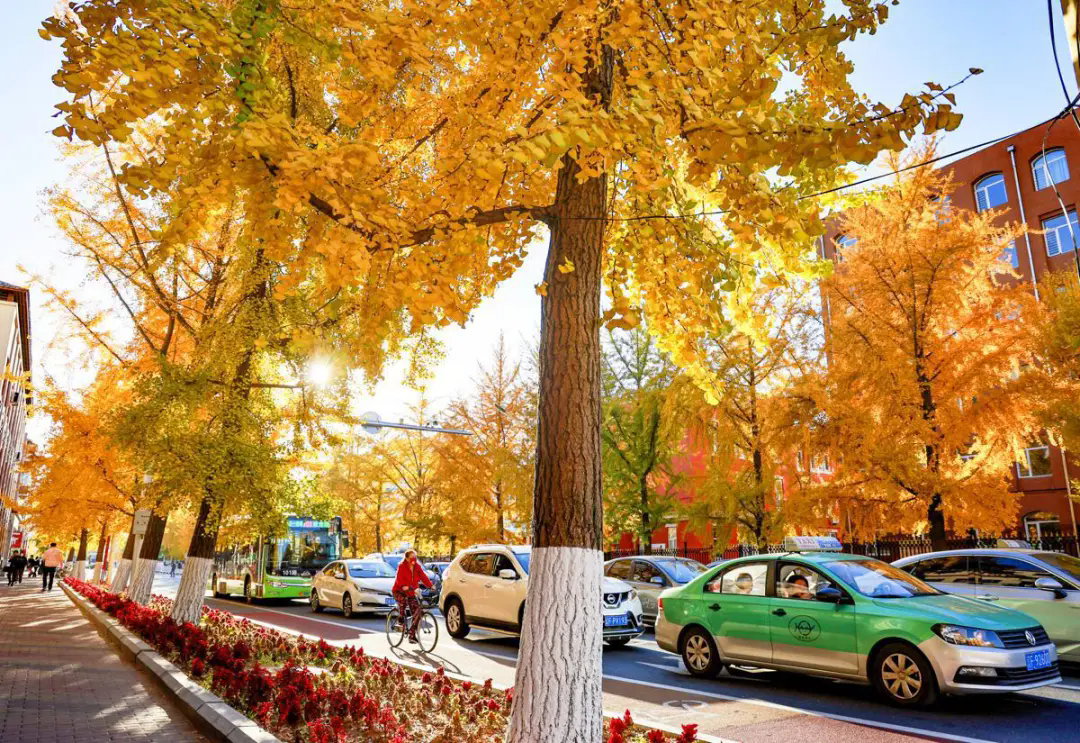 漫步九纬路、六纬路、七经街,阳光透过枝叶的缝隙洒下,在地面形成交错的光影,与金黄的银杏叶相互映衬,仿佛进入梦幻般的童话世界。