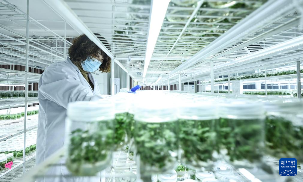 1月12日,在辽宁草莓科学技术研究院,工作人员在进行种苗培育工作。新华社记者 潘昱龙 摄
