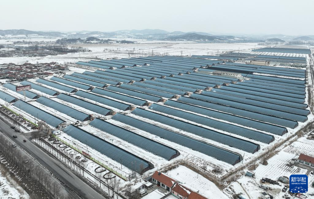 这是1月12日在辽宁东港拍摄的一处草莓大棚外景(无人机照片)。新华社记者 潘昱龙 摄