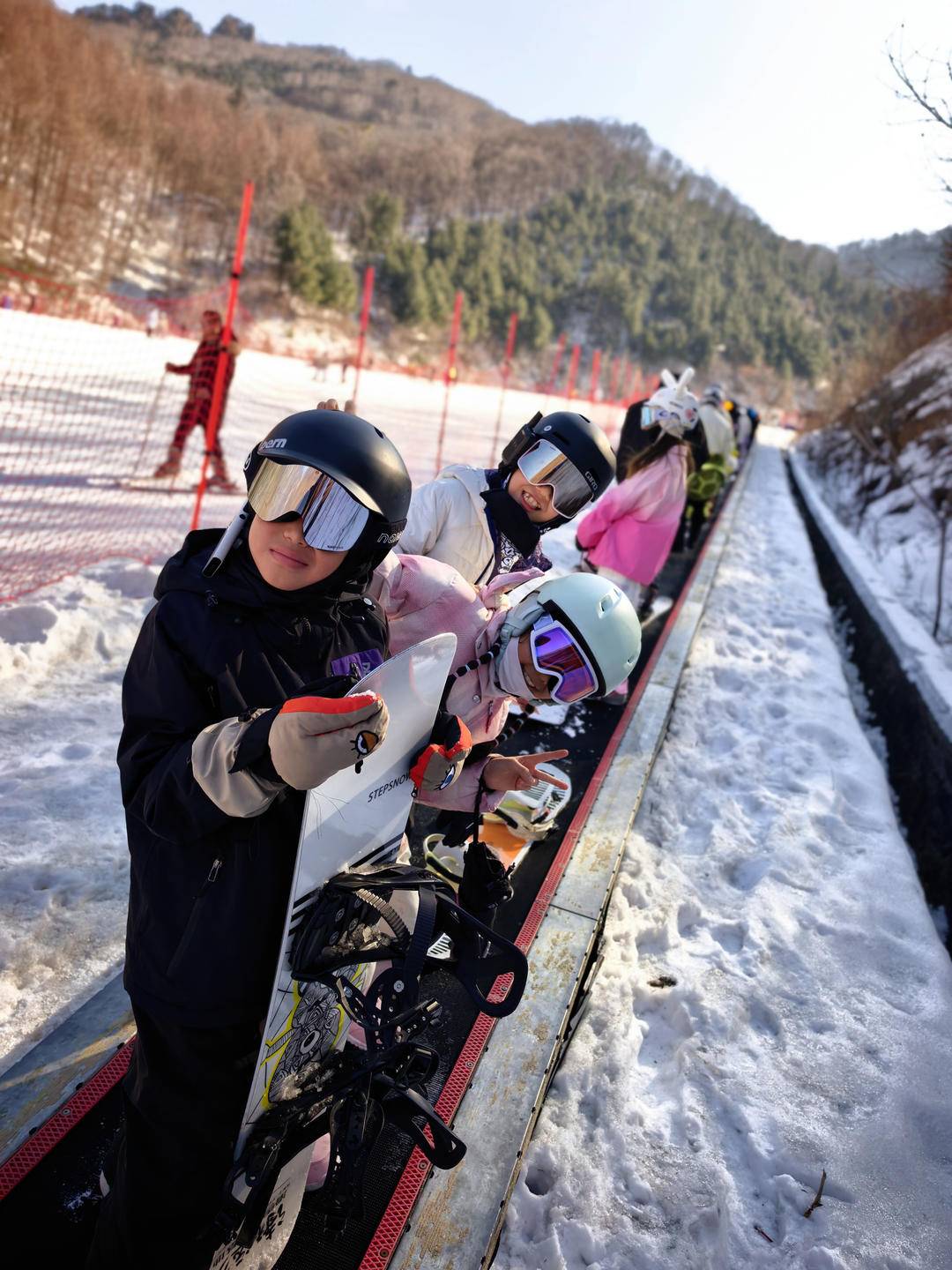 今年,为了让孩子能进阶学习滑雪,在朋友推荐下,他们选择了雪道更专业的天桥沟滑雪场,还为女儿郑蓝淇报名了专业滑雪课程。