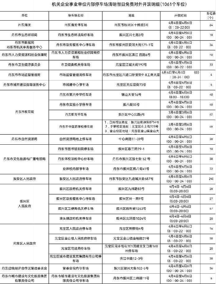 原标题:清明踏青畅行丹东!丹东26处机关企事业单位停车场对外地游客免费开放