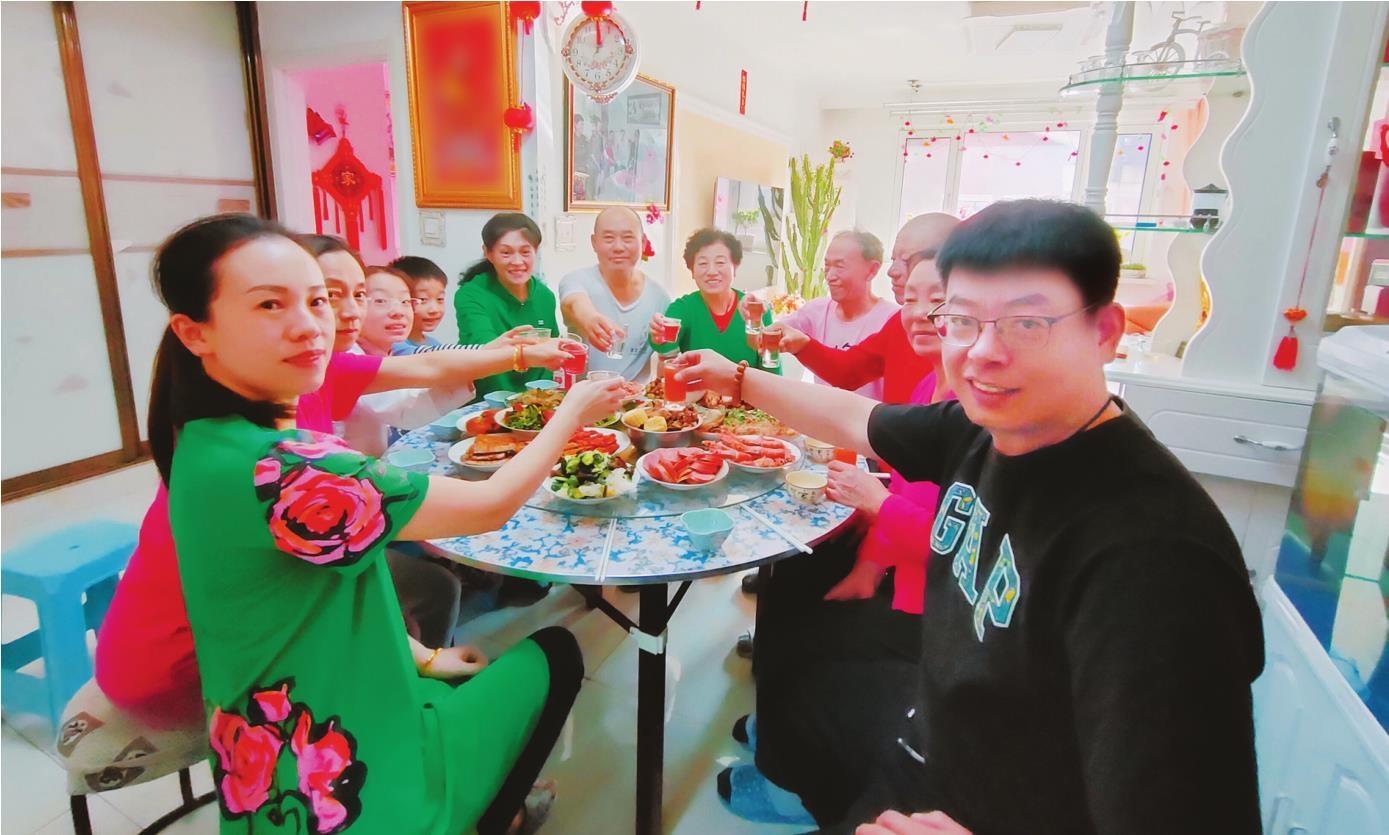 下午1点多,家庭聚会正式开席,一家十多口人围坐在一起,边吃边聊。
