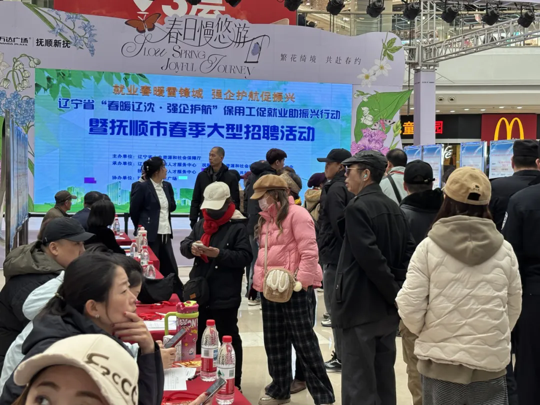 春风送岗促就业,强企护航助振兴。 3月14日,由辽宁省人力资源和社会保障厅主办,辽宁省就业和人才服务中心、抚顺市人力资源和社会保障局、抚顺市总工会、抚顺市就业和人才服务中心、抚顺各县区人社局及公共就业服务机构承办的辽宁省“春暖辽沈·强企护航”保用工促就业助振兴行动暨抚顺市春季大型招聘活动在新抚万达广场如期举办。活动当日,吸引了近2000人次进场咨询洽谈,223人达成初步就业意向,发放政策宣传材料500余份,直播间累计在线观看人数达20000+人次。