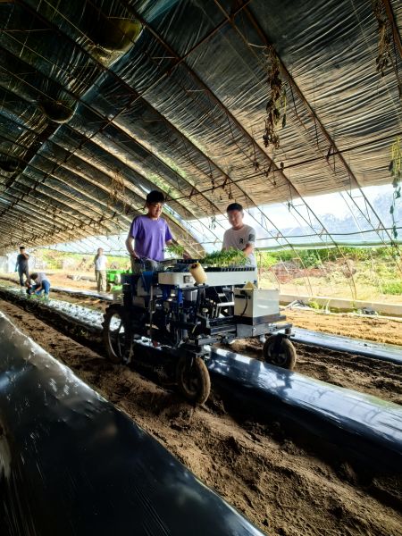 中新网辽宁新闻11月21日电 日前,在阜新市福兴地镇十家子村的温室大棚内,百余人正在关注着一场特殊的“田间考”:电动撒肥机匀速前行,肥料如细雨般均匀铺洒;自走式起垄铺管覆膜复式作业机一次进地,便完成起垄、铺滴灌带和覆膜的全套工序;移栽机精准作业,黄瓜秧苗株距误差控制在2厘米以内……这场设施蔬菜生产装备作业现场观摩培训会让周边乡镇和当地的蔬菜种植户们眼前一亮——原来日光温室蔬菜种植,也能像大地种小麦、玉米一样实现“机械化”。