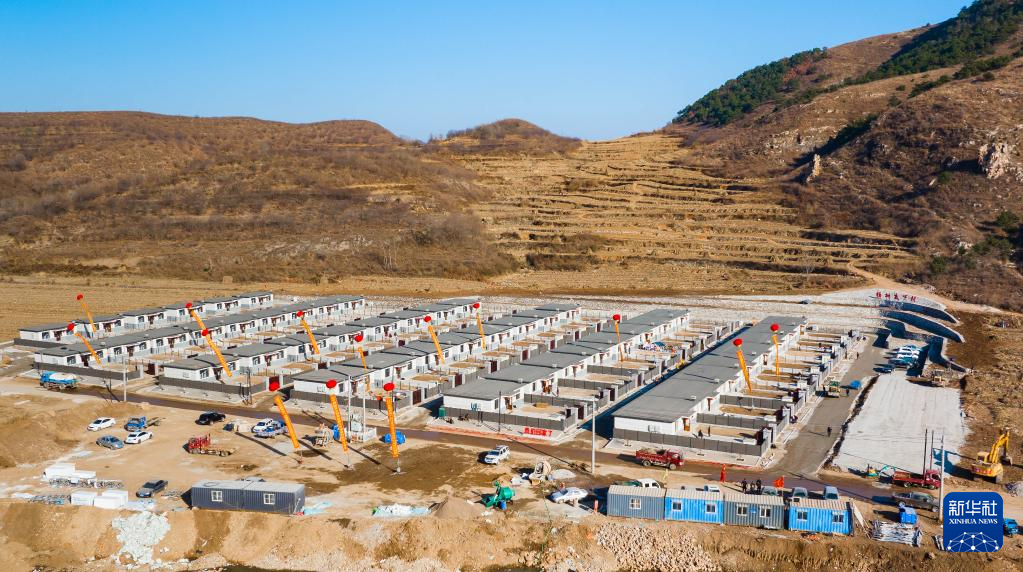 这是11月5日拍摄的辽宁省葫芦岛市绥中县祝家沟村集中安置重建住房(左侧白色房屋,无人机照片)。新华社记者 潘昱龙 摄