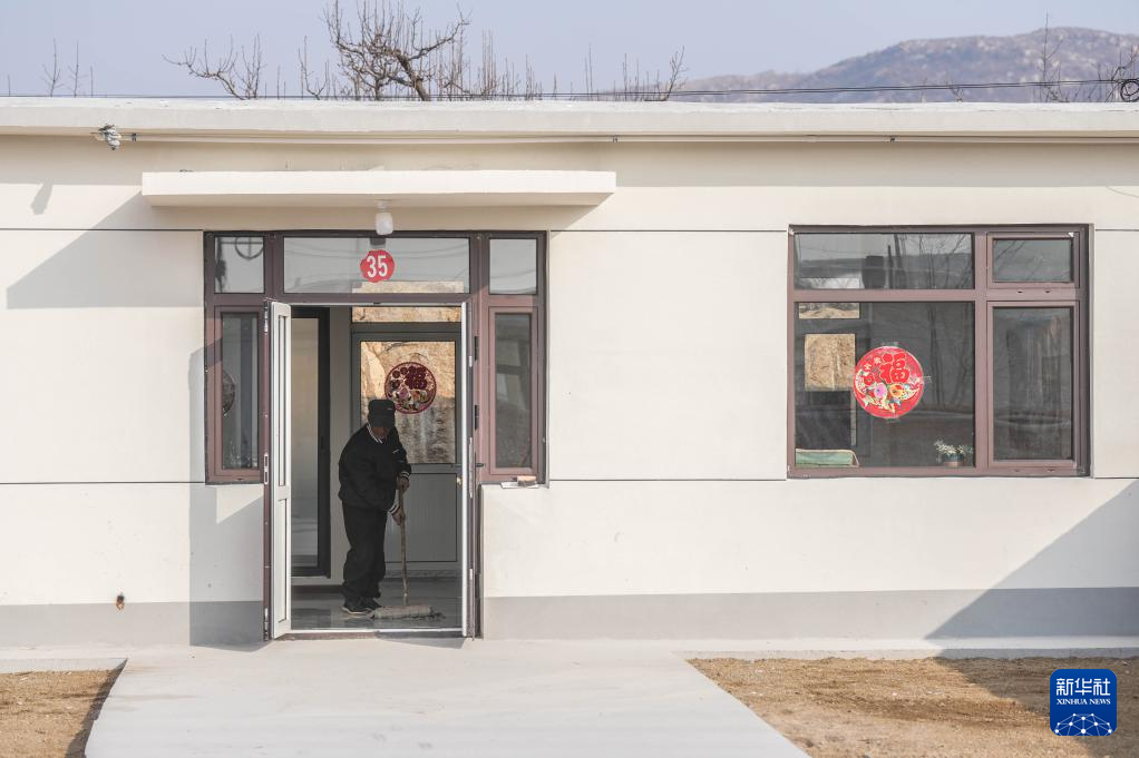 11月8日,辽宁省葫芦岛市绥中县祝家沟村村民在集中安置重建住房清扫屋子。新华社记者 潘昱龙 摄