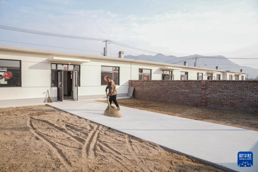 11月8日,辽宁省葫芦岛市绥中县祝家沟村村民在集中安置重建住房清扫院子。新华社记者 潘昱龙 摄