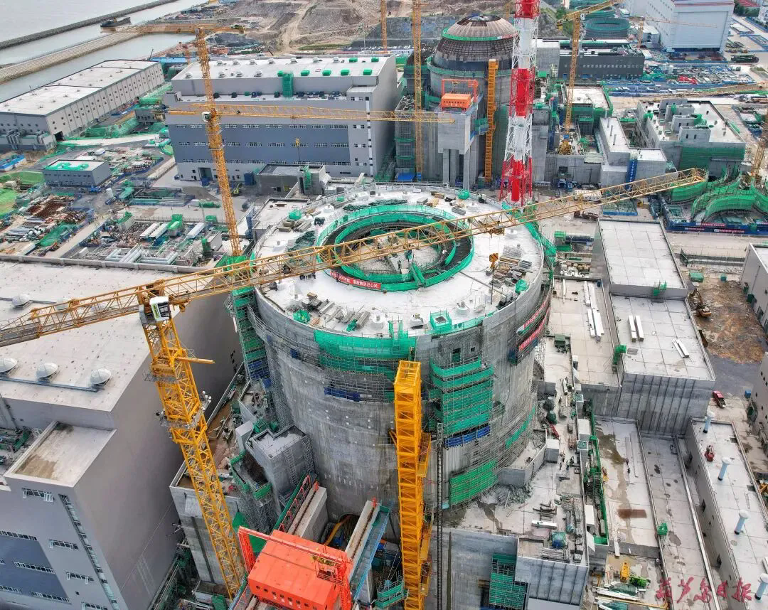 塔吊巨臂挥舞,工程车辆穿梭,焊接火花四溅……走进徐大堡核电站项目现场,建设者在钢筋桁架间穿行,奋斗正酣,映入眼帘的便是一幅“满弦开弓”的景象。