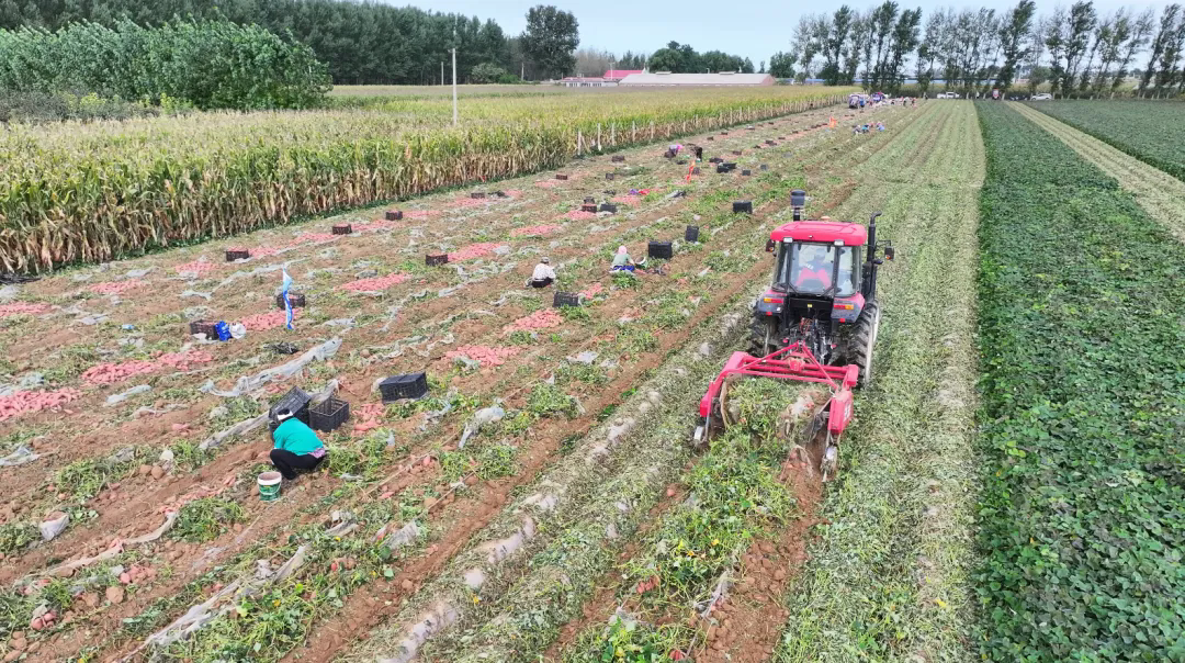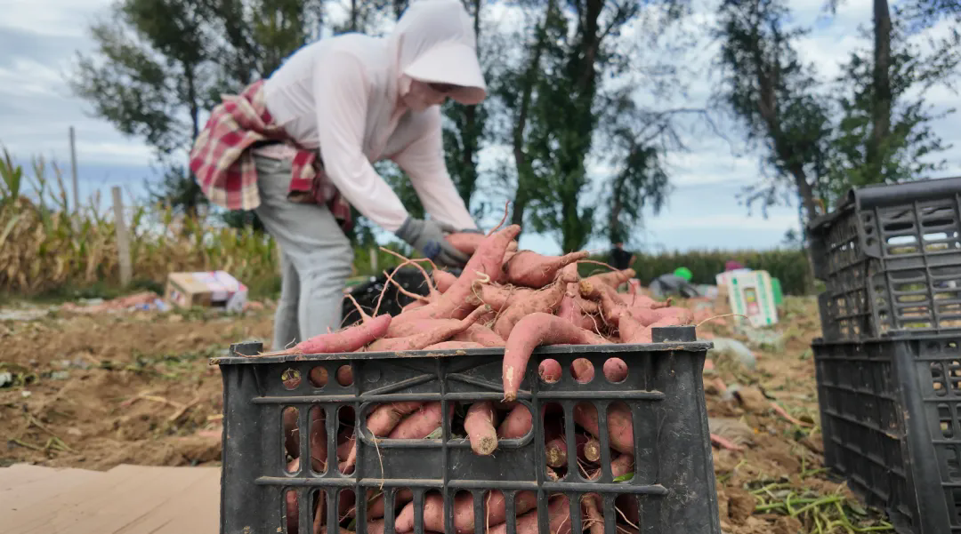 在众犇大田专业种植合作社的地瓜种植基地,记者看到,随着杀秧机和地瓜收获机的来回穿梭,一个个圆润饱满、色泽鲜亮的地瓜破土而出,农户熟练地去泥、挑拣、装箱,运往储藏库进行储藏。据合作社负责人介绍,今年合作社地瓜种植面积约600亩,由于天气较往年提前转冷,采收工作也比往年有所提前。目前,合作社已雇用30余名周边村民参与采收,日均采收量在20亩至30亩之间,有效确保地瓜归仓进度。