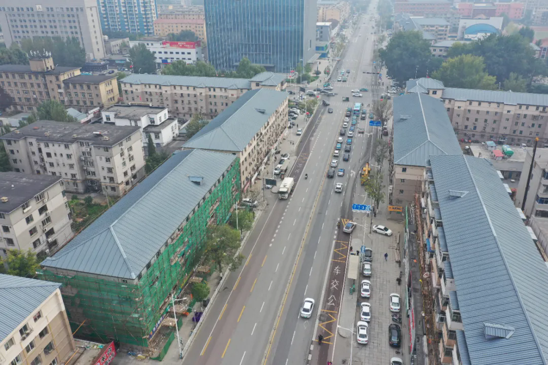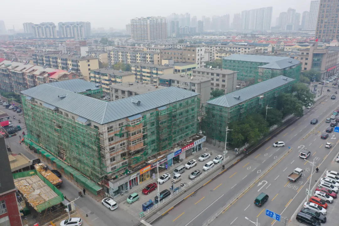 走在民主路上,道路两旁的老式居民楼被整齐的绿色防尘网包裹着,纵横交错的脚手架间,工人们正在紧张有序地施工。这片绵延的“绿网”之下,一场由内而外的美丽蜕变正在加速推进。