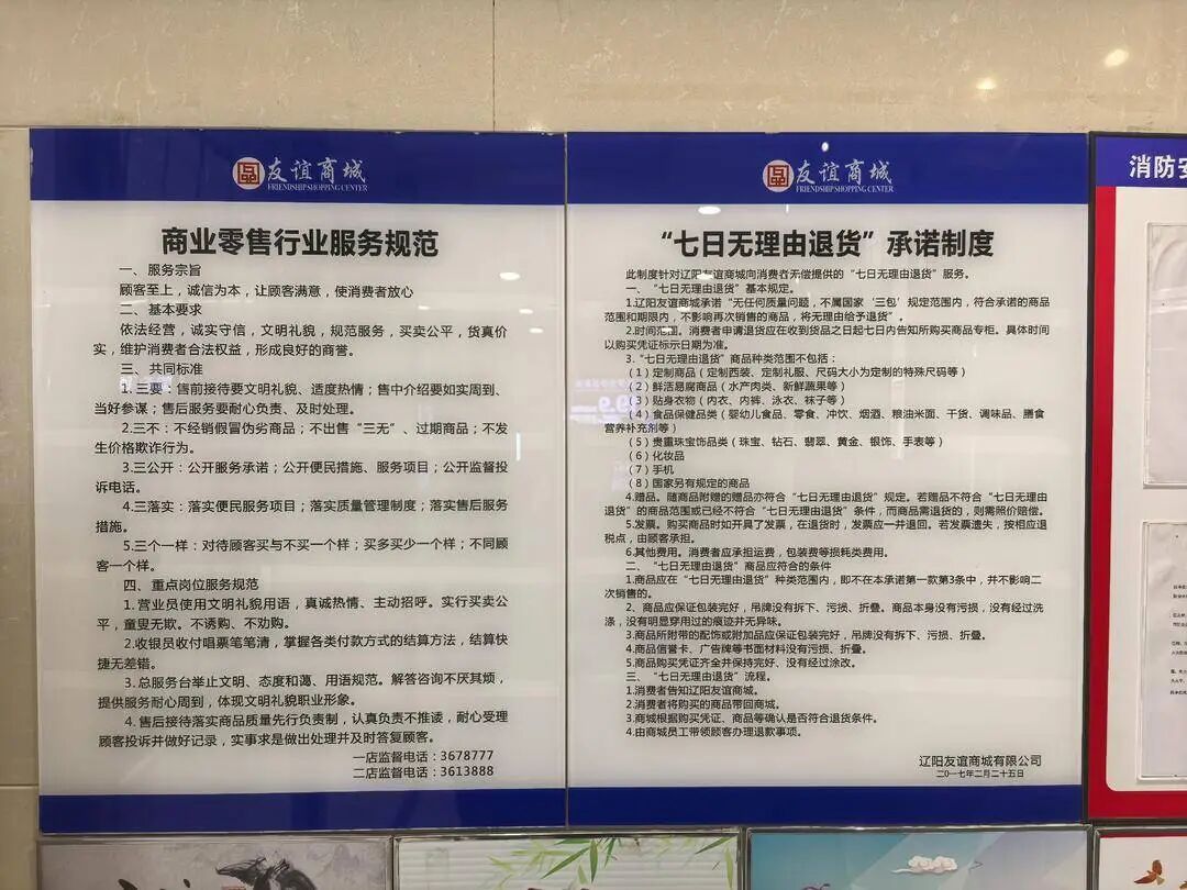 活动现场,辽阳市市场监管局工作人员详细解读了《售后服务无理由退货服务规范》国家标准,明确 “无理由” 并非 “无底线”—— 服装、家电等常见商品在不影响二次销售的前提下,均可按规定时限退货,既给消费者定心丸,也为商家划清了操作边界。友谊商城、大润发、盛达体育等企业代表现场签署承诺书,用实际行动响应倡议。