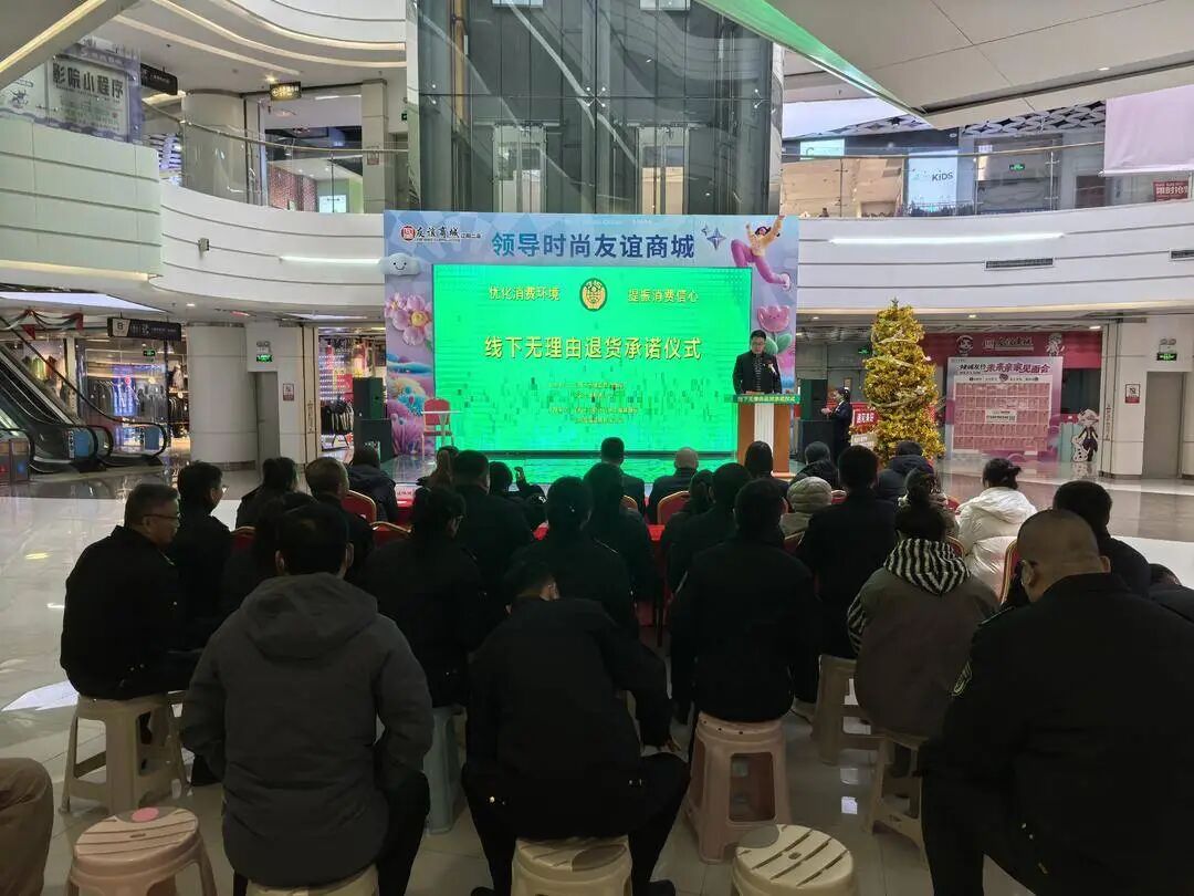 12月12日,辽阳市 “线下无理由退货” 承诺仪式在友谊商城二部举行,185家实体店集体亮明诚信态度,让市民手握线下消费 “后悔权”,购物体验再升级。