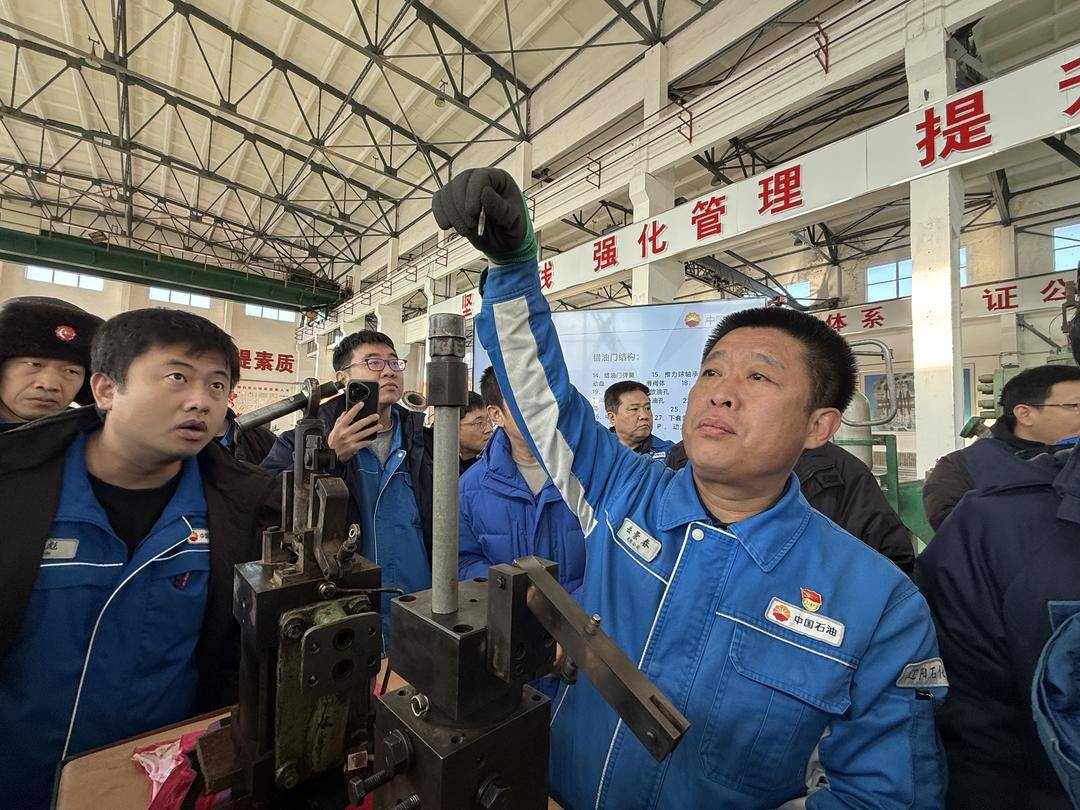 岳景春是中石油辽阳石化建修公司维修二车间维修一班的班长,干了32年石化设备维修,获得过全国技术能手。在辽化,他的维修现场课是青年工人争着听的“网红课”。春节前夕,记者挤在年轻工人里,也跟着吃了一顿“小灶”。