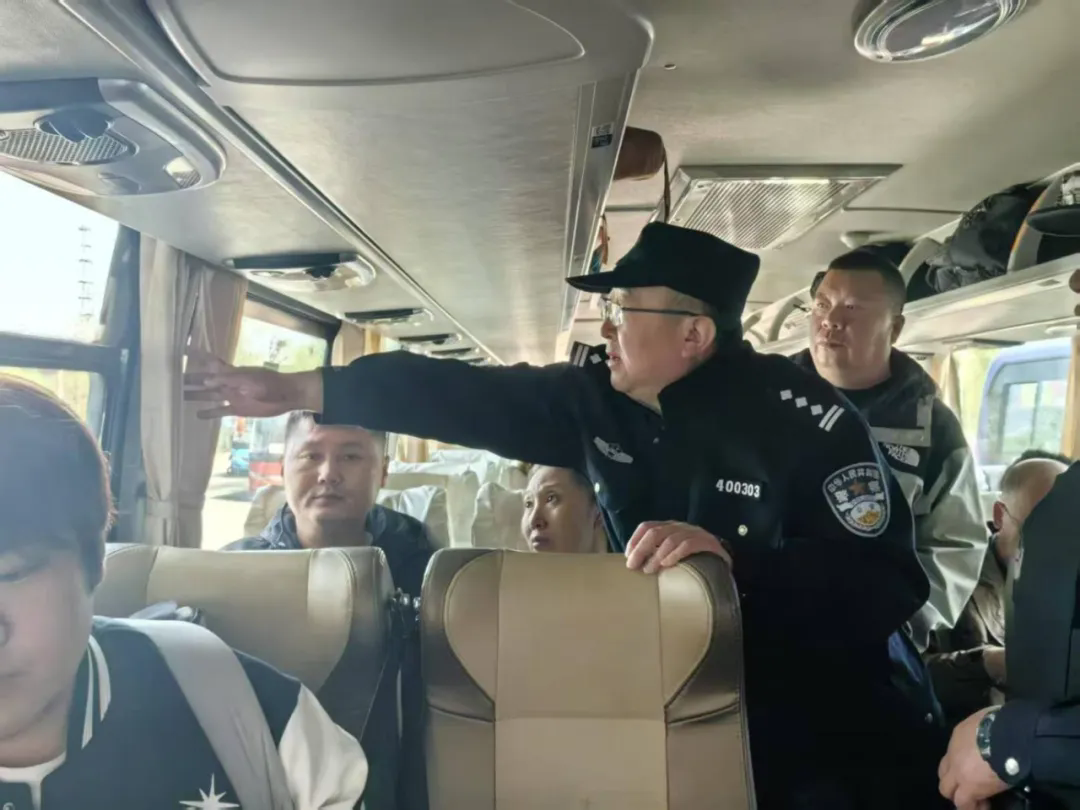 抚顺市公安局民警在长途客运站大巴车内开展工作,以移动勤务模式强化大型活动周边重点区域动态防控