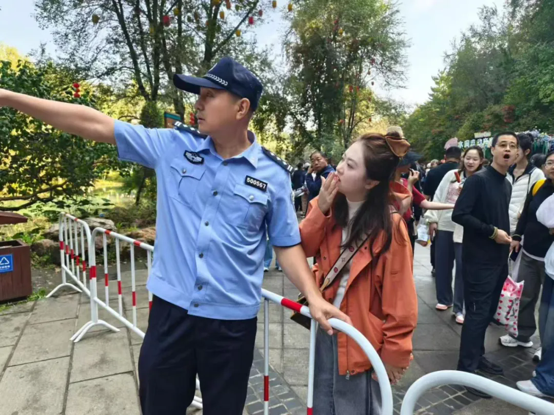 本溪市公安局民警在景区为游客指路,在大型活动安保中同步提供便民服务,让平安更有温度