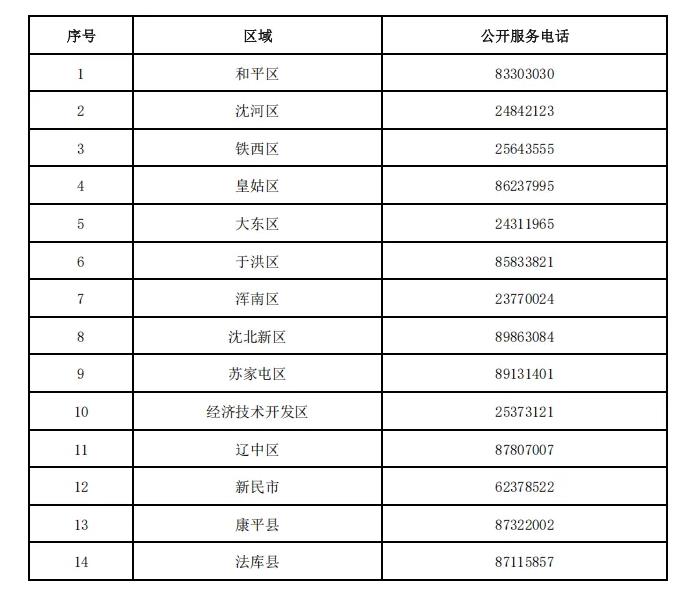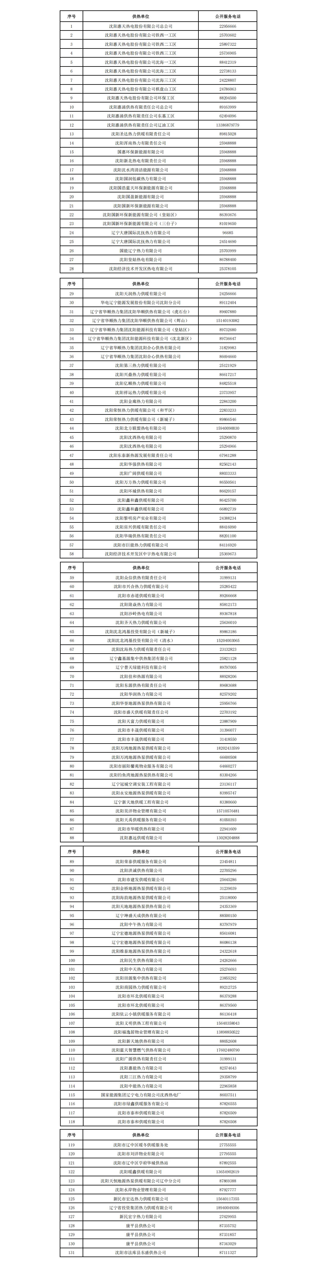沈阳市供热单位公开服务电话