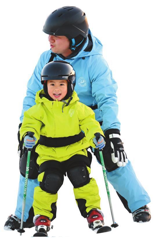 图:12月7日,在沈阳东北亚国际滑雪场,初学滑雪的小朋友穿戴齐全,在教练的指导下学习滑雪。