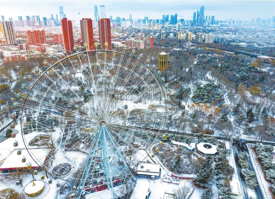 一场落雪,让沈阳万泉公园成了城市里的“冬日秘境”。航拍镜头下,银装裹满摩天轮的钢架,旋转木马的彩顶覆了层绒白……不远处,便是城市建筑群:玻璃幕墙反射着雪光,红砖居民楼映着雪色,雪后的城与园,既装得下都市的烟火,也留得住自然的诗意,正是城市“生长与呼吸共存”的生动写照。