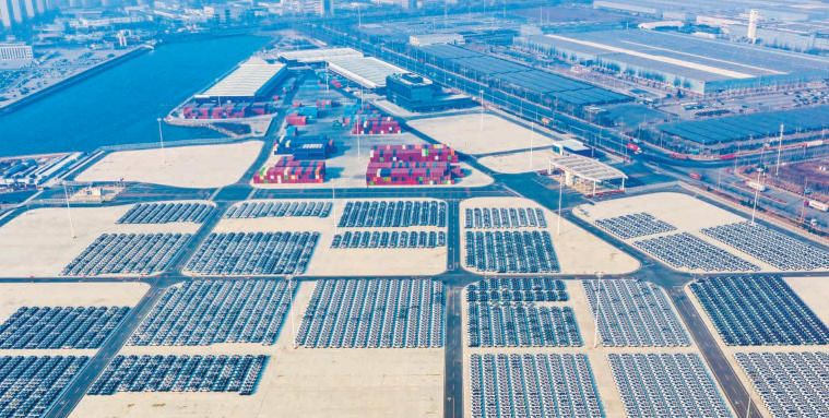 在大连大窑湾保税物流中心,数千辆汽车等待“出海”。 特约记者 朴峰 摄