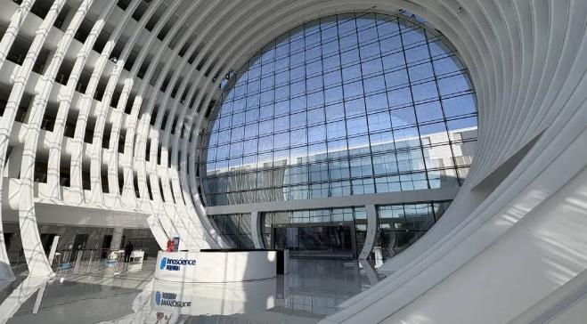 英诺赛科苏州工厂的主建筑,是一幢形似拱桥的白色大楼,楼体中间,镶嵌着一面形如芯片晶圆的玻璃幕墙。晨光中大楼的影子倒映在河水中,泛起粼粼波光。简洁优雅的建筑样式与静谧的氛围,让人很难把这里与全球产量最大的8英寸氮化镓芯片生产线联系在一起。