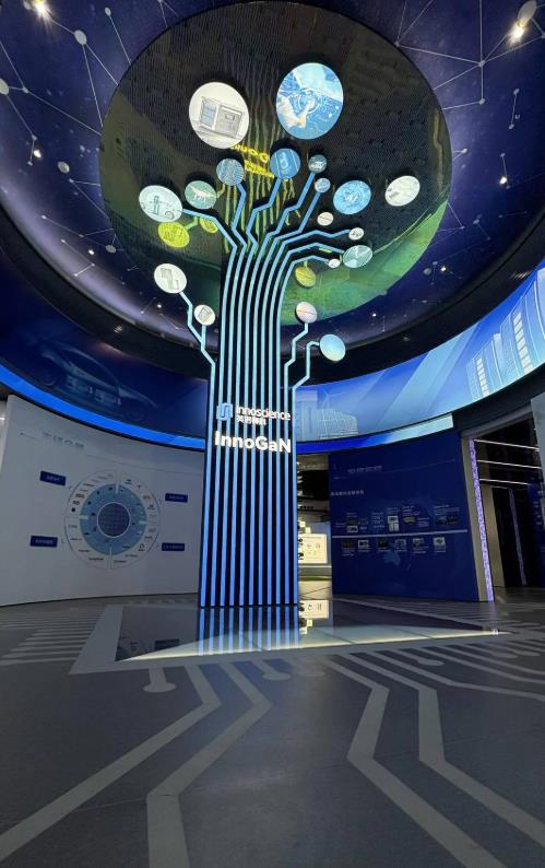 英诺赛科展厅中的“科技之树”,直观呈现了技术的全产业链布局与第三代半导体的创新实力。