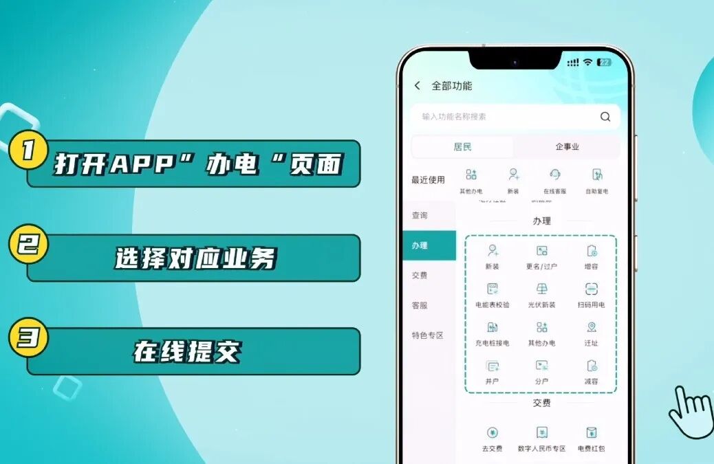 万一需要办理新房接电、老房复电,也完全不用跑营业厅。在“网上国网”APP的“办电”页面找到对应业务,按照指引在线提交,客户经理就会及时与您联系,实现“业务线上跑,您一次都不用跑”。