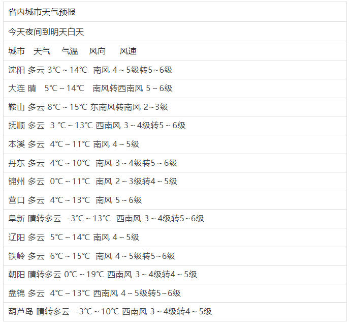 大连、朝阳南部、葫芦岛地区多云