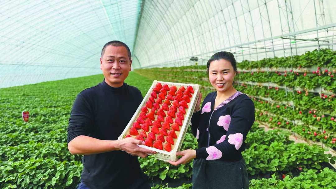 “凭借在外学到的本事,在家也能闯出一番新天地。”这对曾在北京奋斗16年的夫妻,在前不久的一次回乡探亲时,萌生了返乡建棚创业的想法。不同于村里老一辈的传统种植模式,徐照龙和李敏从一开始就打定主意,走差异化路线,用新技术赋能草莓种植。他们将可食用红糖与豆浆发酵制成有机肥料,悉心浇灌草莓。如今他们实行精细化管理,按重量分级装盒,夫妻俩分工协作、深耕技术,凭着新技术和硬干劲,种出清甜可口的好草莓。