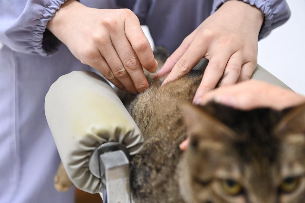 2026年2月1日,在广西南宁一家从事宠物寄养业务的宠物医院,工作人员为猫针灸。新华社记者曹祎铭 摄