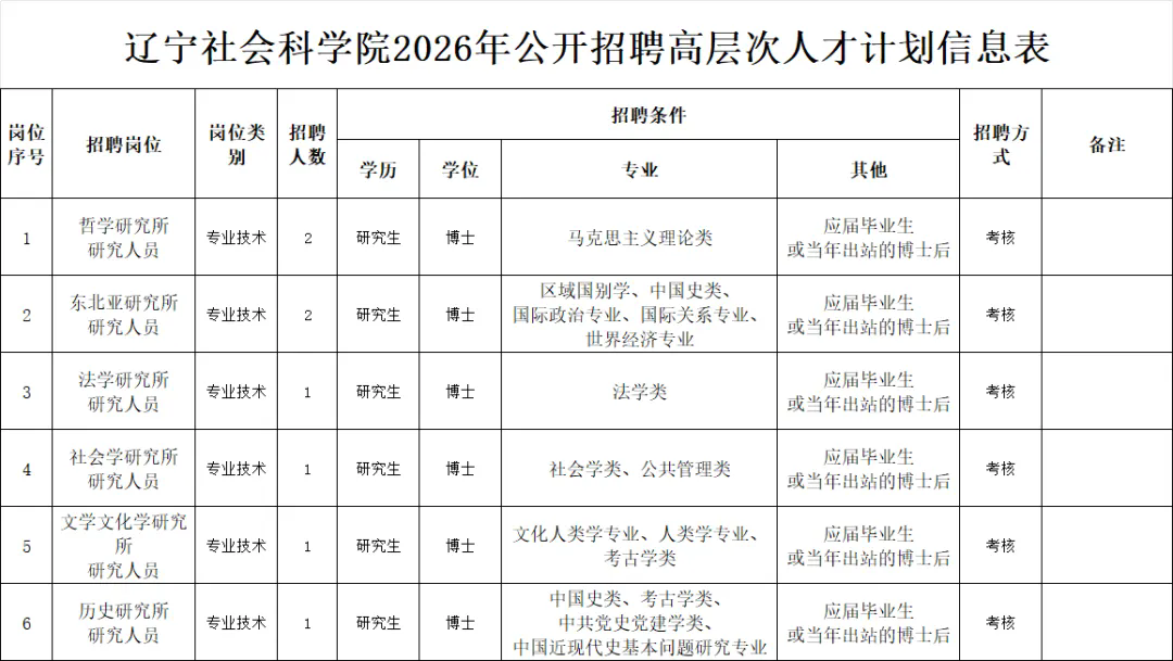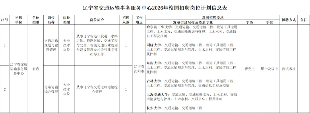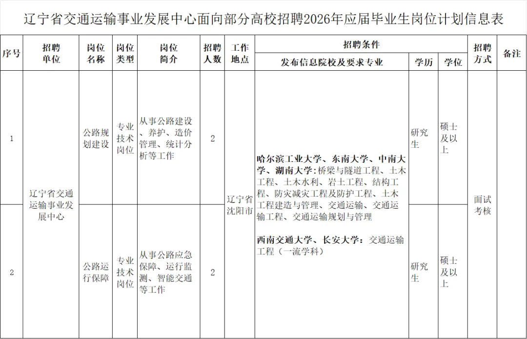招聘对象:符合招聘基本条件和招聘岗位具体资格条件的2026年普通高校应届硕士及以上毕业生,不包括往年毕业但未派遣的毕业生。
