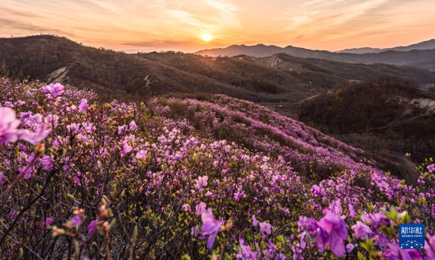 近日,在辽宁省岫岩满族自治县黄岭村映山红景区,近千亩映山红竞相开放。