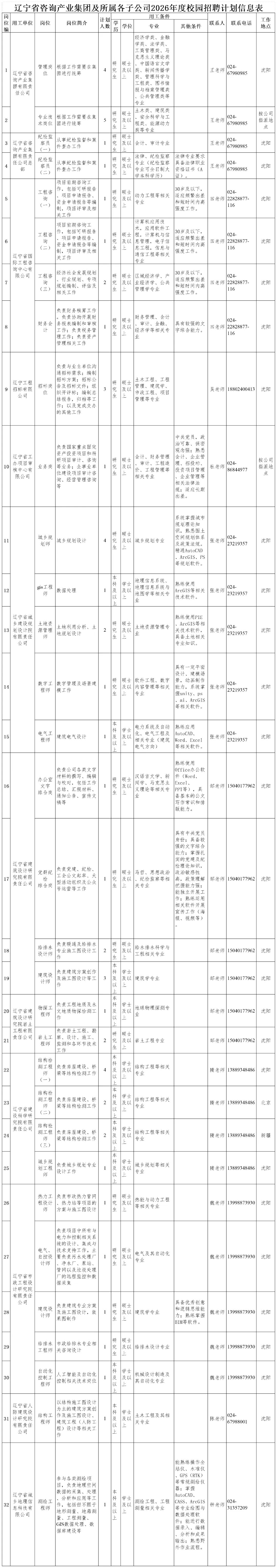 具体岗位咨询电话详见《辽宁省咨询产业集团及所属各子公司2026年度校园招聘计划信息表》联系人、联系电话(周一至周五上午8:30-11:30,下午1:30-4:30)。