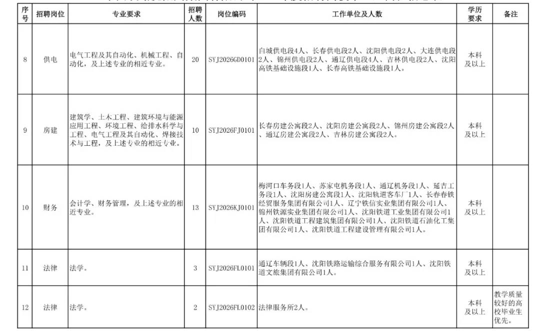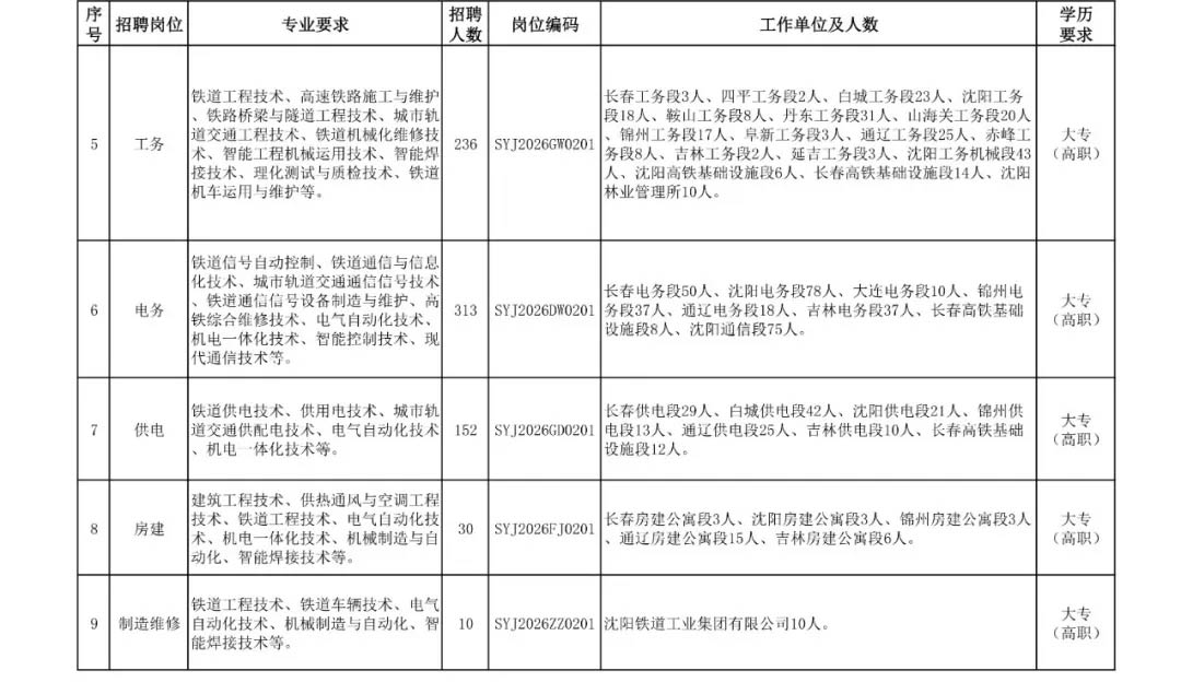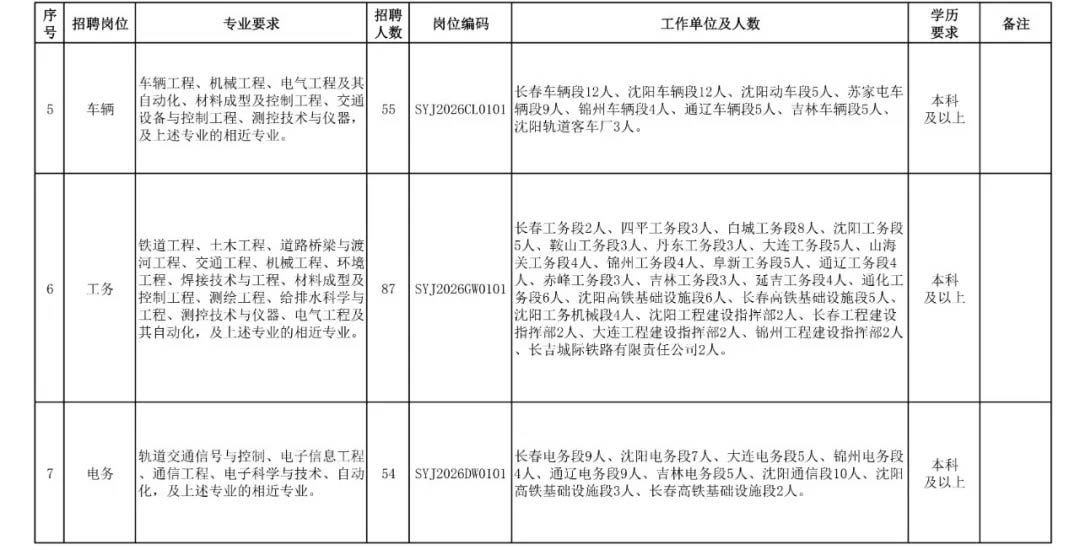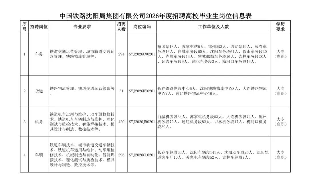 中国铁路沈阳局集团有限公司2026年度招聘高校毕业生公告(二)