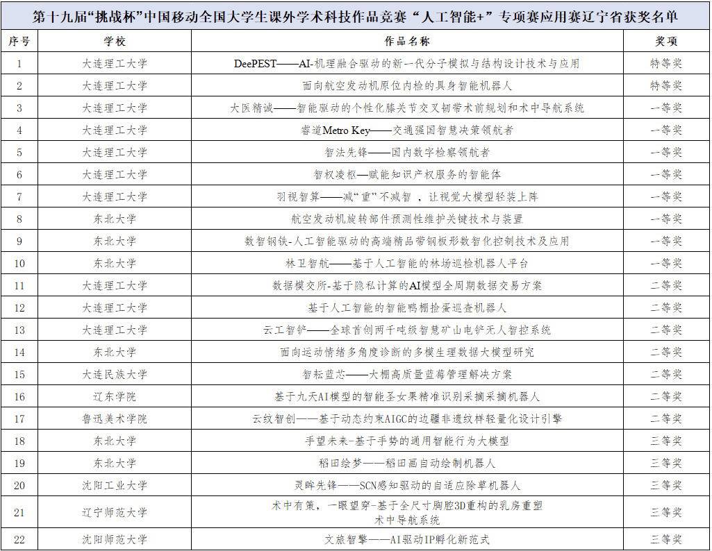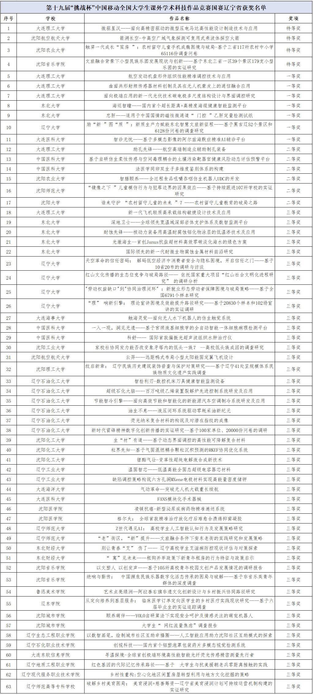 我省代表团入围主体赛决赛的17个项目脱颖而出,大连理工大学、沈阳航空航天大学等4所高校的参赛项目获特等奖,东北大学、辽宁大学等4所高校的7个参赛项目获一等奖,中国医科大学、沈阳农业大学等5所高校的6个参赛项目获二等奖。