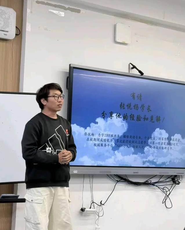 大四学年,张悦杨担任2025级新生成长发展指导员,这一角色的转变,正是理学院“薪火相传”育人传统的延续。学校多年来坚持“学长领航”制度,让优秀学子带动新生成长,张悦杨构建的“点—线—面”三维引导体系,正是对这一传统的创新实践。“线对线”经验传导中,他分享的保研清华方法,离不开学校多年来在升学指导上的经验积累;“点对点”精准帮扶中,他对学弟学妹的关怀,延续了学院“导师+学长”双重指导的育人温度。“微光如炬,我想把自己在学校学到的知识、积累的经验分享给更多人。”张悦杨说道。