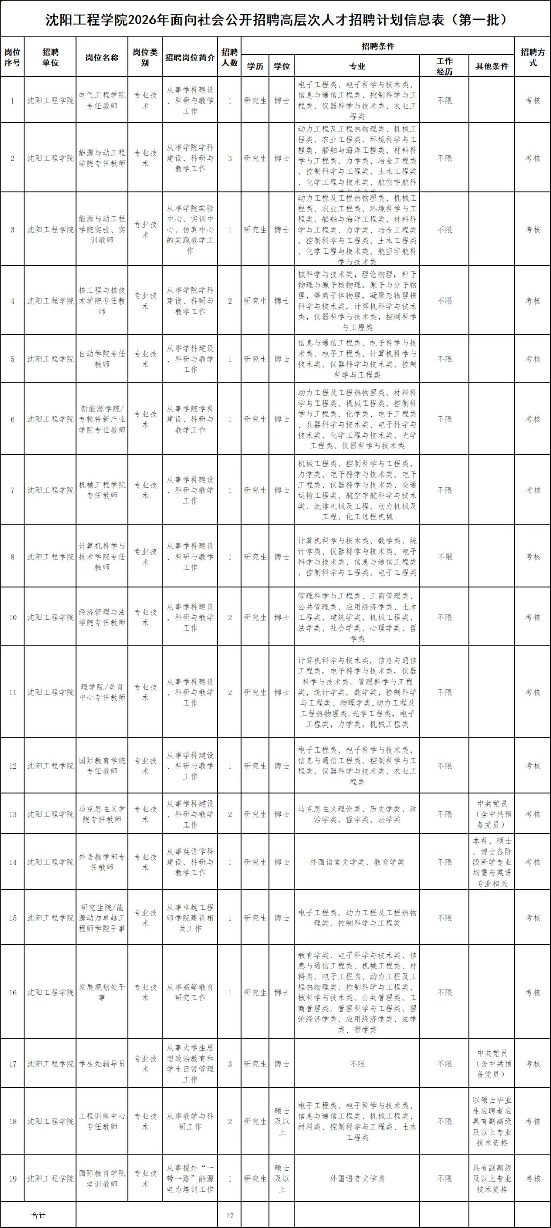 ▶招聘岗位:本次计划招聘19个专业技术岗位共27人。