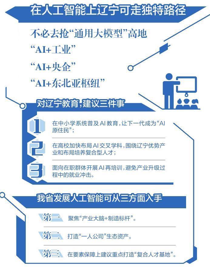 在辽宁,我还特别建议三件事:一是在中小学系统普及AI教育,让下一代成为“AI原住民”;二是在高校加快布局AI交叉学科,围绕辽宁优势产业和布局培养复合型人才;三是面向在职群体开展AI再培训,避免产业升级过程中的就业冲击。