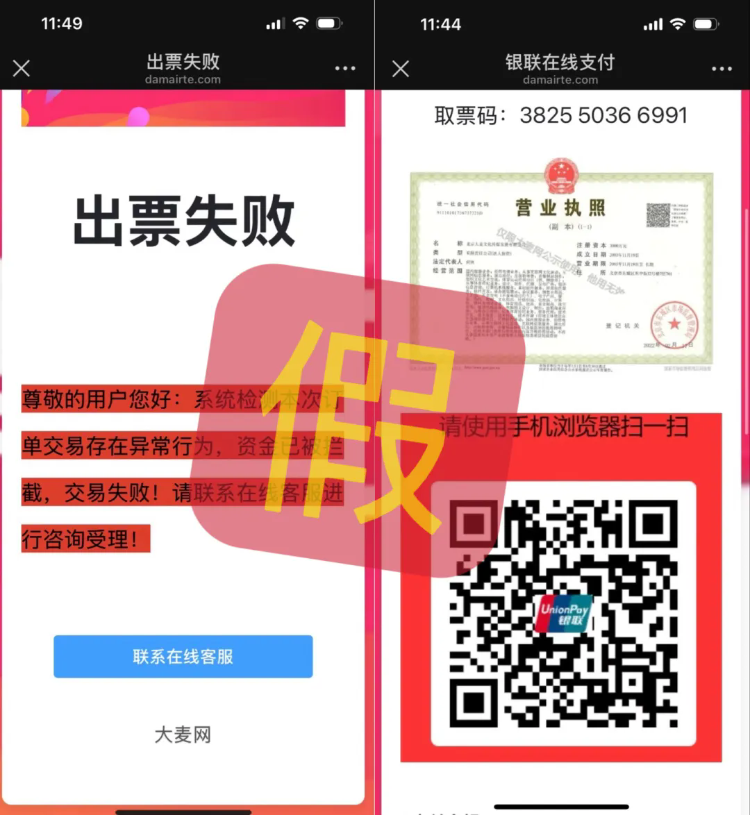 诈骗分子搭建与正规票务平台高度相似的虚假网站或App,受害者扫码进入信息吻合的虚假支付页面,输入金额支付后显示“出票失败”。骗子继而以操作失误为由,引导进入银联APP、支付宝等支付平台实施进一步诈骗。