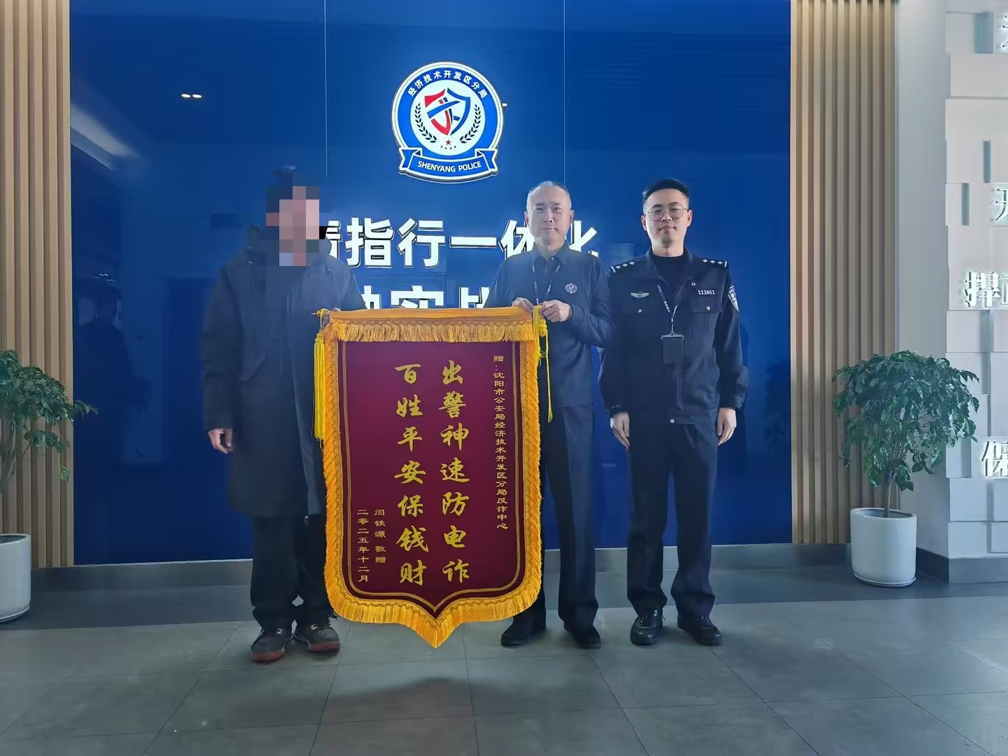 “多亏你们反应快,不然我辛苦攒下的5万元就没了!”12月11日,沈阳市公安局经济技术开发区分局“情指行一体化智融实战中心”内,辖区居民将一面写有“出警神速防反诈、百姓平安保钱财”的锦旗送到民警手中,感谢公安机关及时阻止了一起电信诈骗。