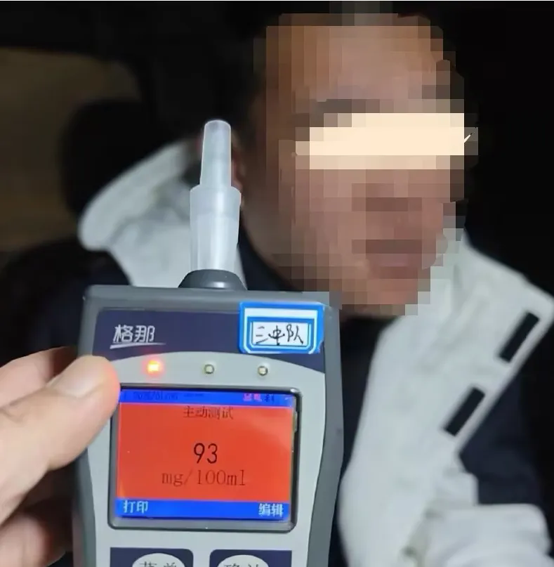 酒精检测值:每百毫升血液中酒精含量达到93毫克