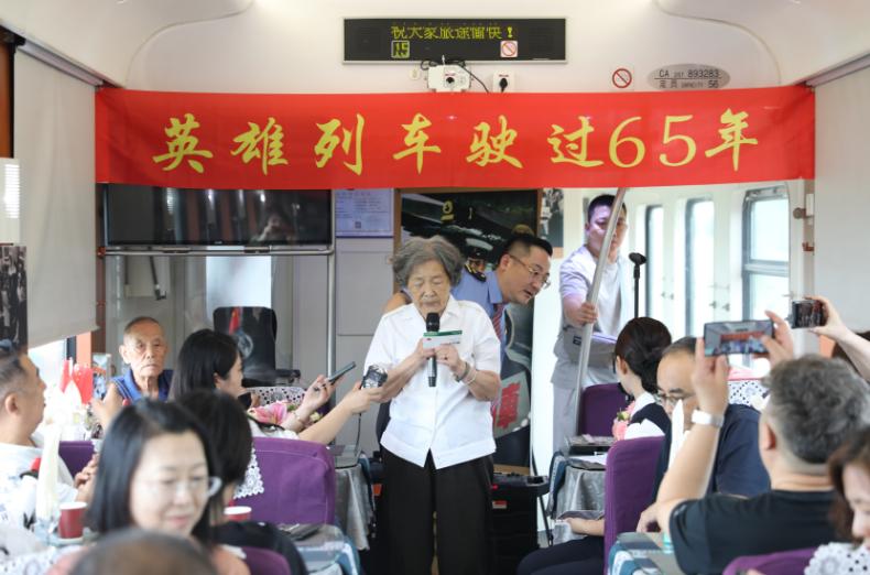红色记忆,红色血脉。看到65年前那场波澜壮阔的英雄壮举,现场的一位老人满眼泪花。她就是《12次列车》原型、12次列车“三八青年包车组”第一任列车长张敏媛。尽管老人家90岁高龄,步履蹒跚,但依然精神矍铄。回忆起65年前的那段刻骨铭心的经历,老人家依然记忆犹新、娓娓道来,赢得旅客的阵阵掌声。