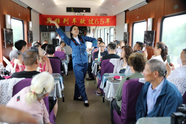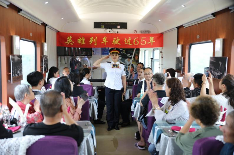 上午8:00,一场“英雄列车驶过65年”为主题的纪念活动在餐车车厢拉开序幕。观看《追忆那些年的铁路服装》《回想那些年的铁路广播》短片,把旅客一下子拉到上世纪六七十年代,沉浸式感受了当年铁路客运的服务特点。